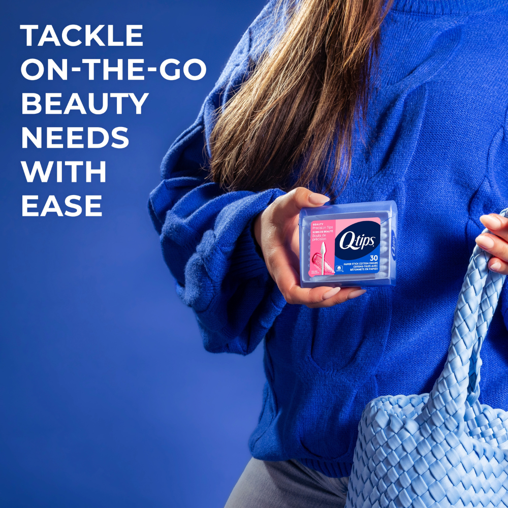 Les cotons-tiges Q-tips® Precision Tips™, votre allié beauté ultime. Dotés d'une pointe fine à chaque extrémité, ces cotons-tiges délicats vous offrent la précision nécessaire pour un maquillage parfait et un maquillage impeccable où que vous soyez. Avec les Q-tips Precision Tips, un fini impeccable et impeccable est garanti. Légers et polyvalents, nos cotons-tiges sont parfaits pour des retouches beauté rapides et faciles, de jour comme de nuit. Quelques passages suffisent pour éliminer l'excédent de paillettes ou même une trace d'eye-liner, ce qui en fait le mini-accessoire indispensable de voyage idéal pour votre prochaine trousse à maquillage. Astuce maquillage ultime : utilisez les Q-tips Precision Tips pour éviter les bavures et les traces, où que vous alliez.
